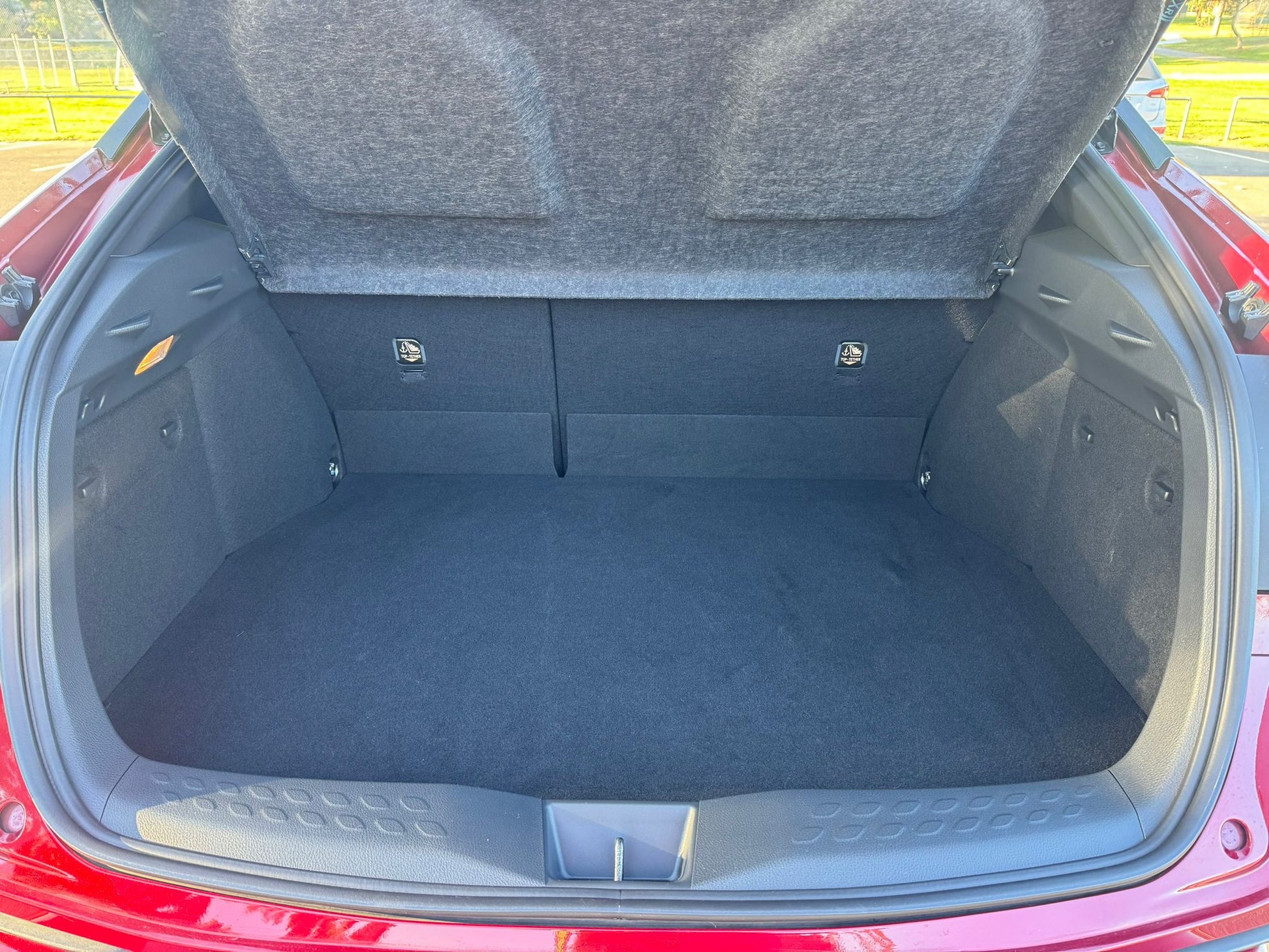 -Striking Design: Eye-catching red exterior with a sleek two-tone black roof, offering a sporty and sophisticated look.